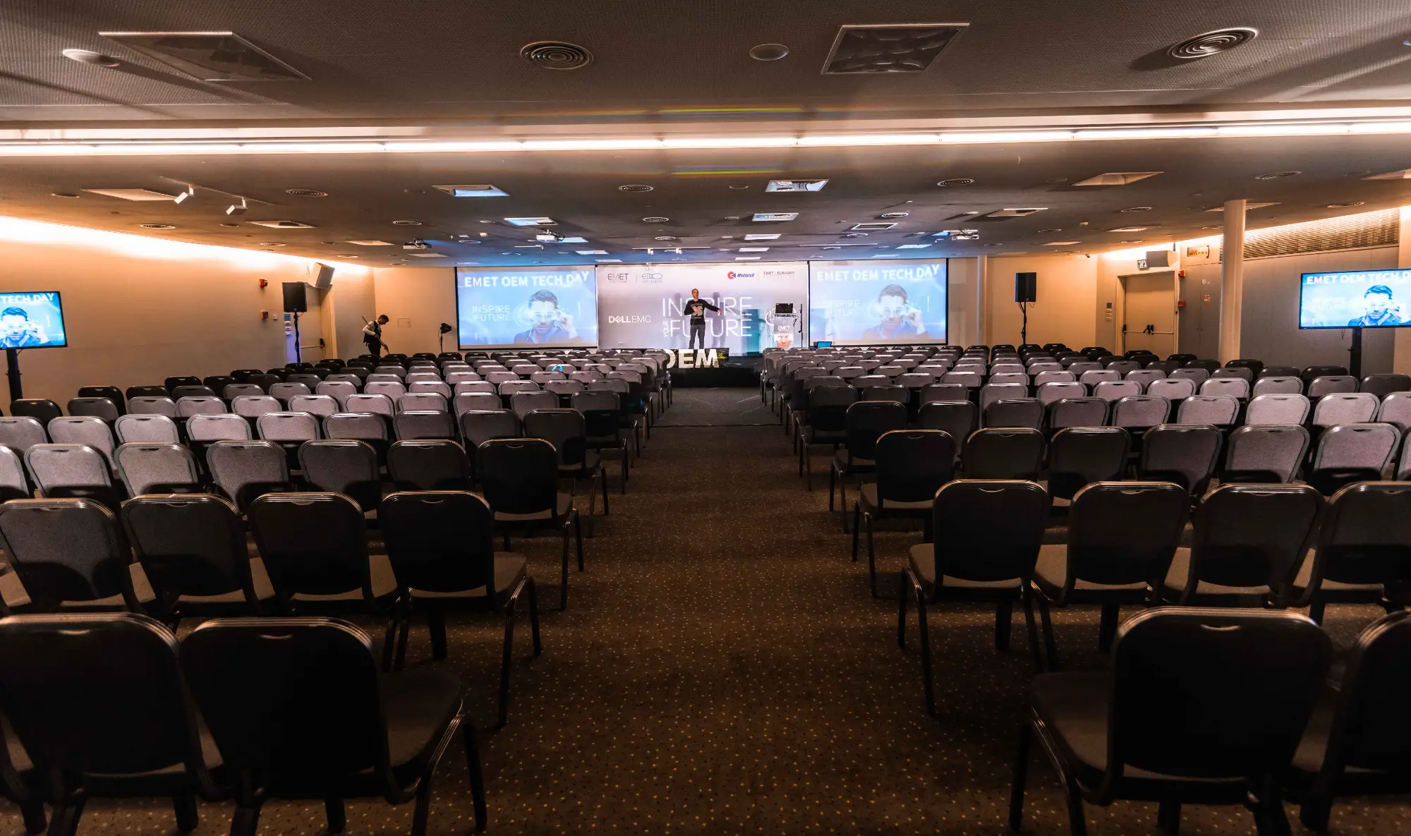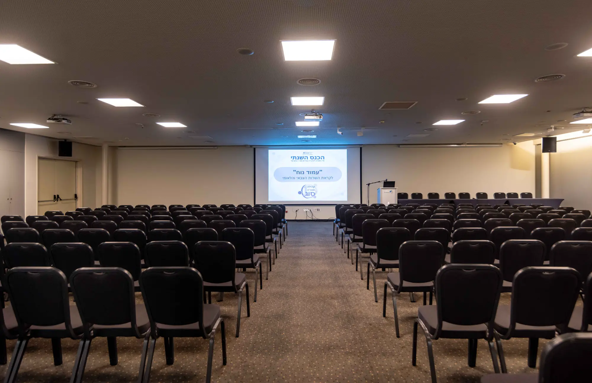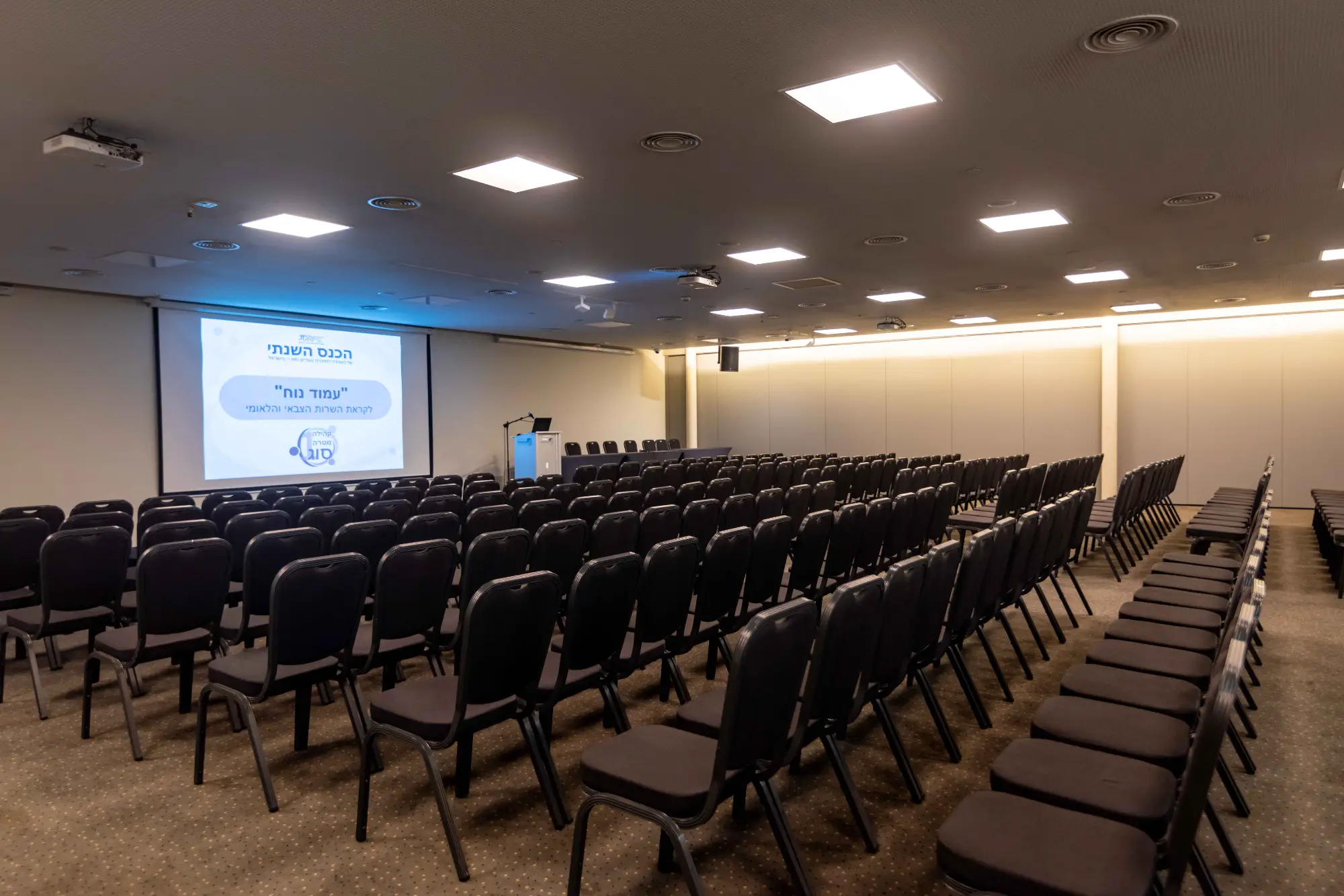 האולם מאובזר במסך וציוד אורקולי מתקדם.