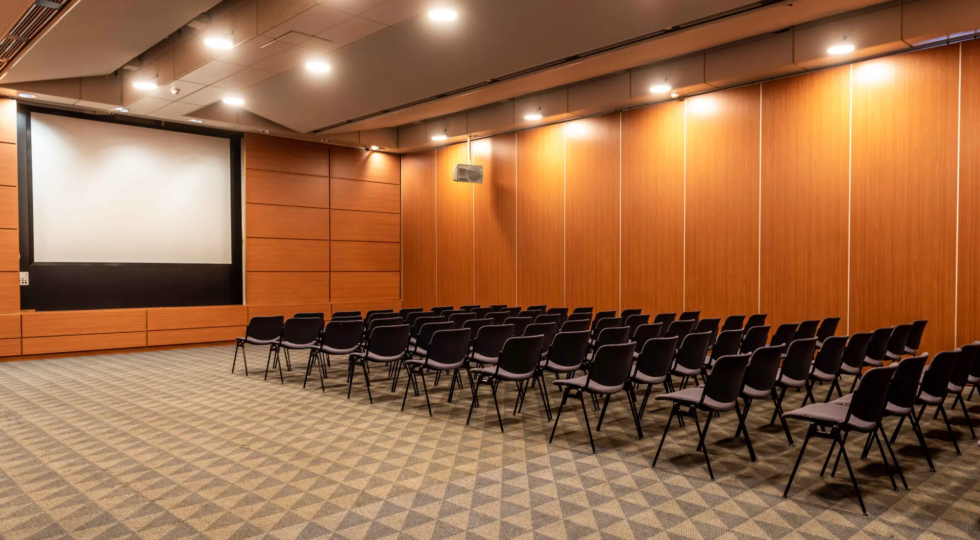 האולם מאובזר במסך וציוד אורקולי מתקדם.